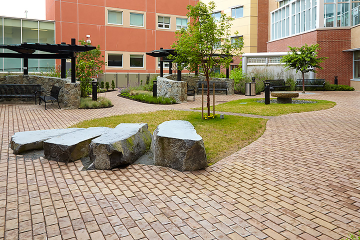 500 bed Patient Care Centre – Design Landscape Architect on team for successful design build competition. Construction implementation included working with Durante Kreuk Ltd. Wide variety of landscape environments from streetscape to staff only garden to secure patient gardens to semi-private patient areas to fully public environments.